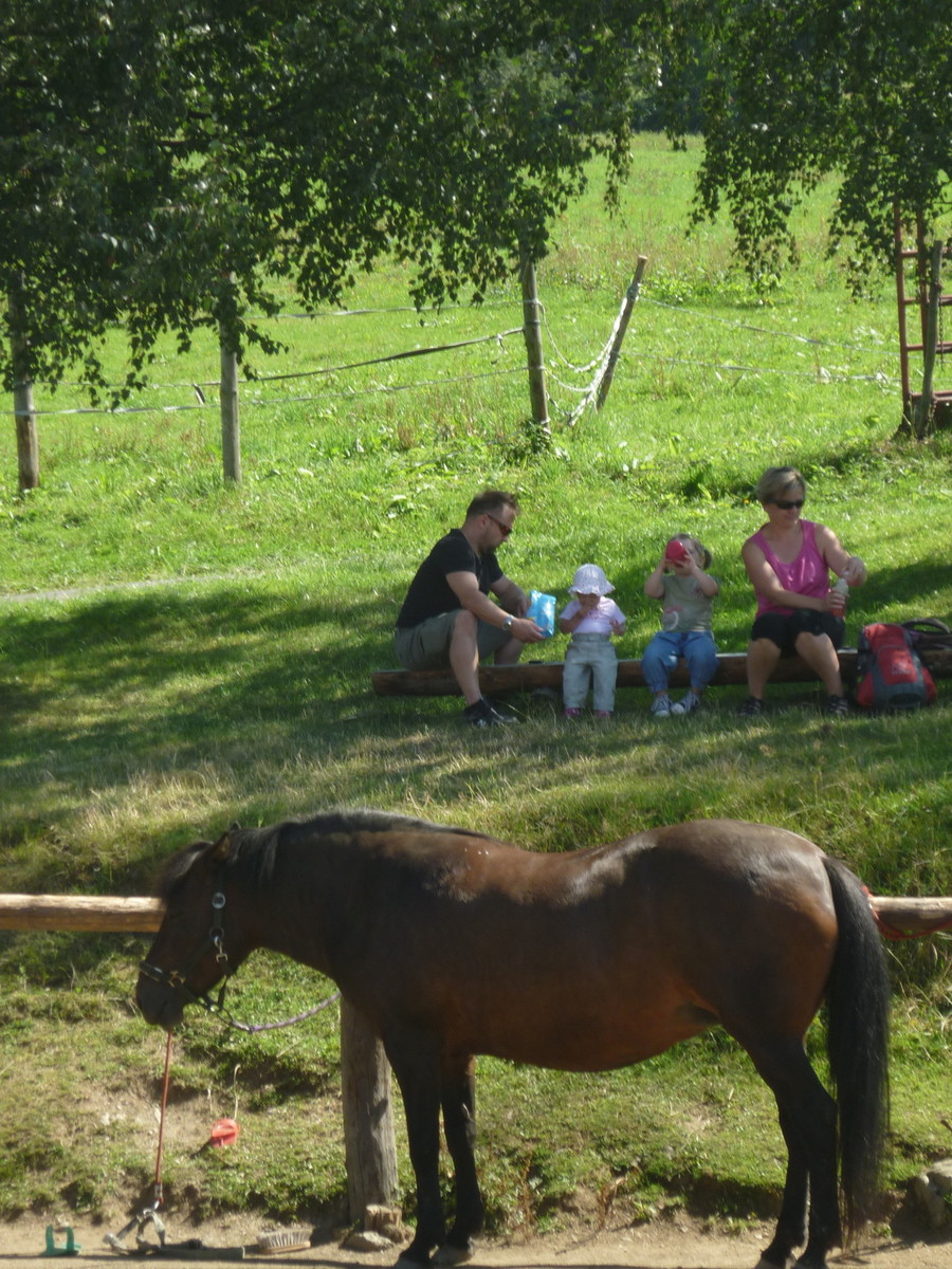 V sobotu 9. srpna jsme vyrazili na letní výlet s hasiči. Náš cíl byl v nedalekých krkonošských kopcích - na koňské farmě Hucul na Janově hoře. Včas a pěkně pohromadě jsme dorazili na místo a téměř 30 výletníků užilo pohody a klidu tohoto pěkného místa. Nejprve trocha poznání o farmě, kdy si na nás chvilku drahocenného letního času udělala také Bětka Karbusická a řekla ledacos zajímavého o koních. Omladina postupně osedlala místní kobylky a prohlédla si okolí z koňského hřbetu, odkud je prý nejkrásnější pohled na svět. Po vydatném posílení svíčkovou, guláškem, kachničkou, štrůdlíkem, kafíčkem...se část výpravy vydala na malý výlet na vyhlídku a ochutnala také sladké maliny a pár borůvek. Domů jsme dorazili lehce unaveni krátce před pátou a vítal nás drobný deštík.